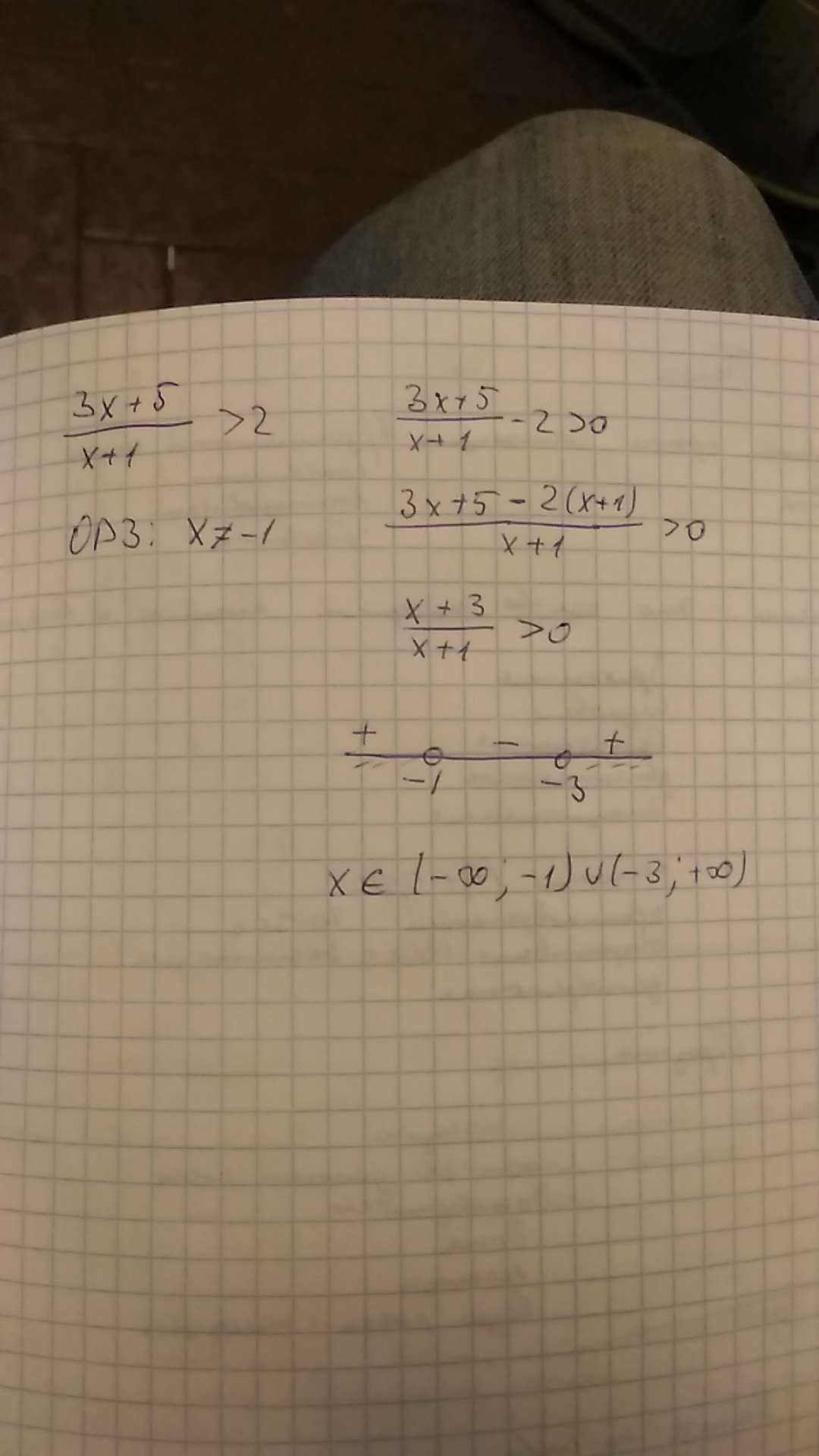 находим одз х≠-1, переносим 2 налево, расписываем, кидаем на числовую