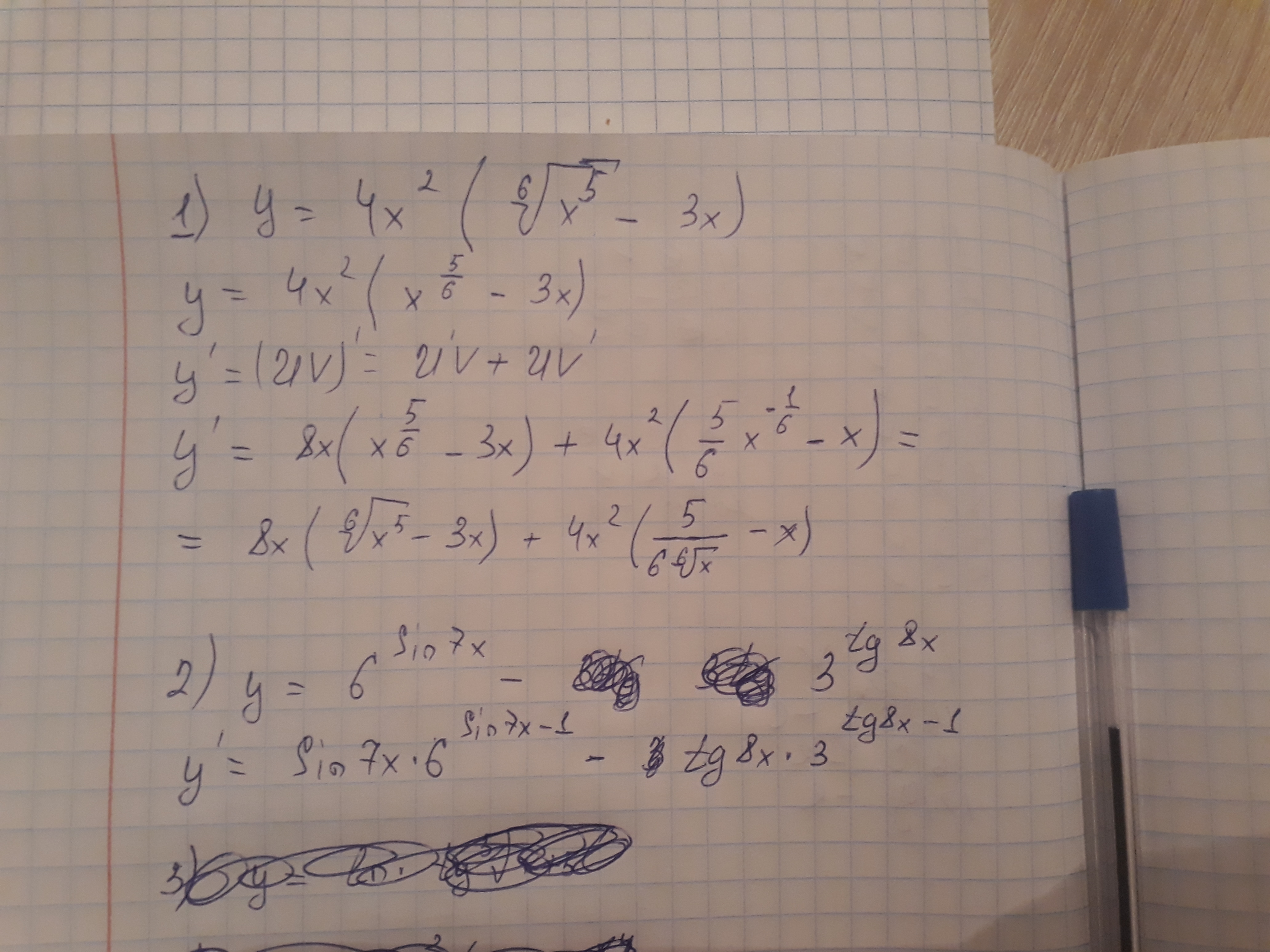 во 2 примере нельзя использовать производную степени. Это показательная функция, а не степенная