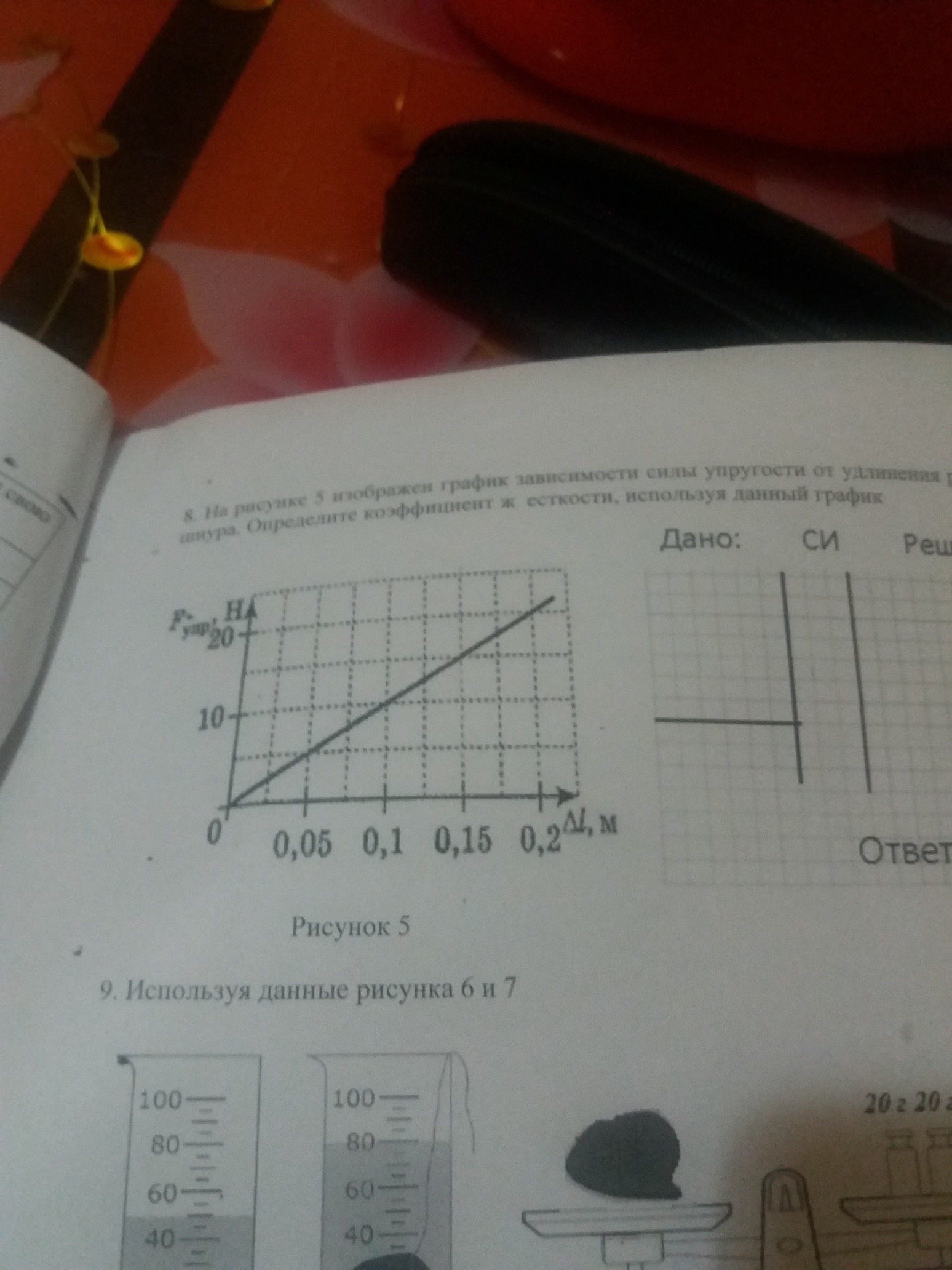 на рисунке 5 изображен график зависимостм силы упругости от ужлигение резинового шнурраа.определите коэффициень жесткости используя данный график