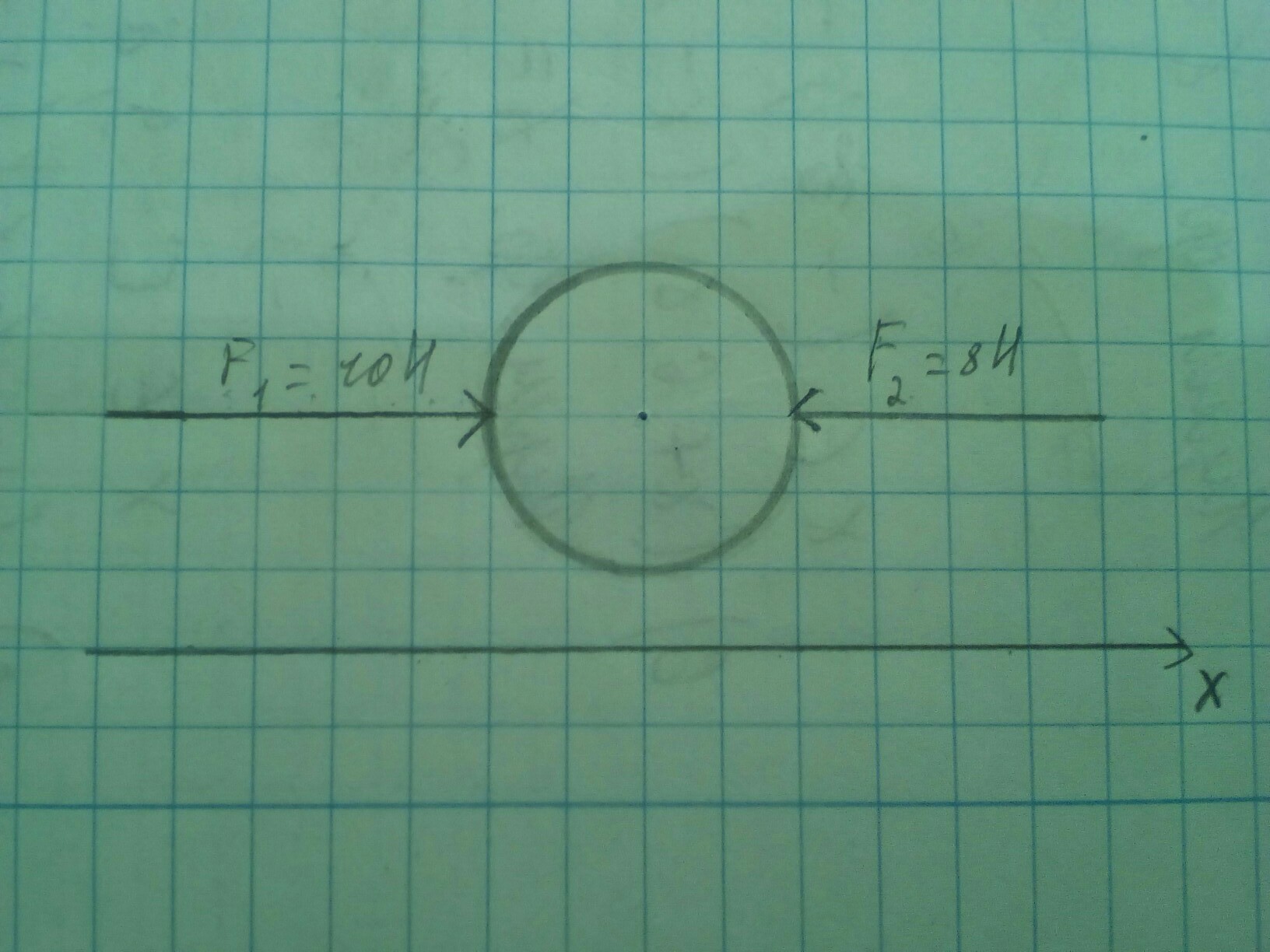 F = 10 - 8 = 2 Н