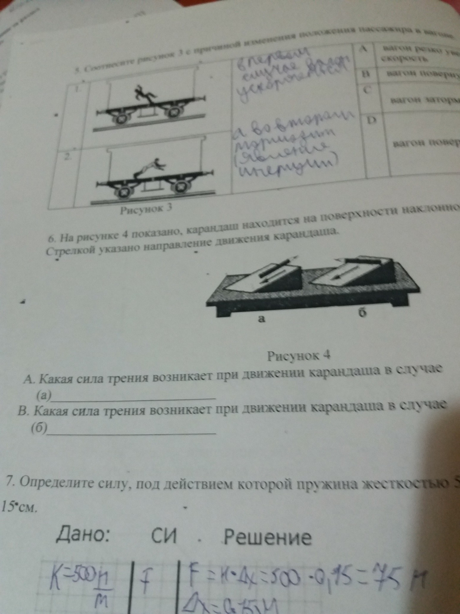 на рисунке 4 показано карандаш находиьься на поверхности наклонной плоскости стрелкой указано направление карандаша