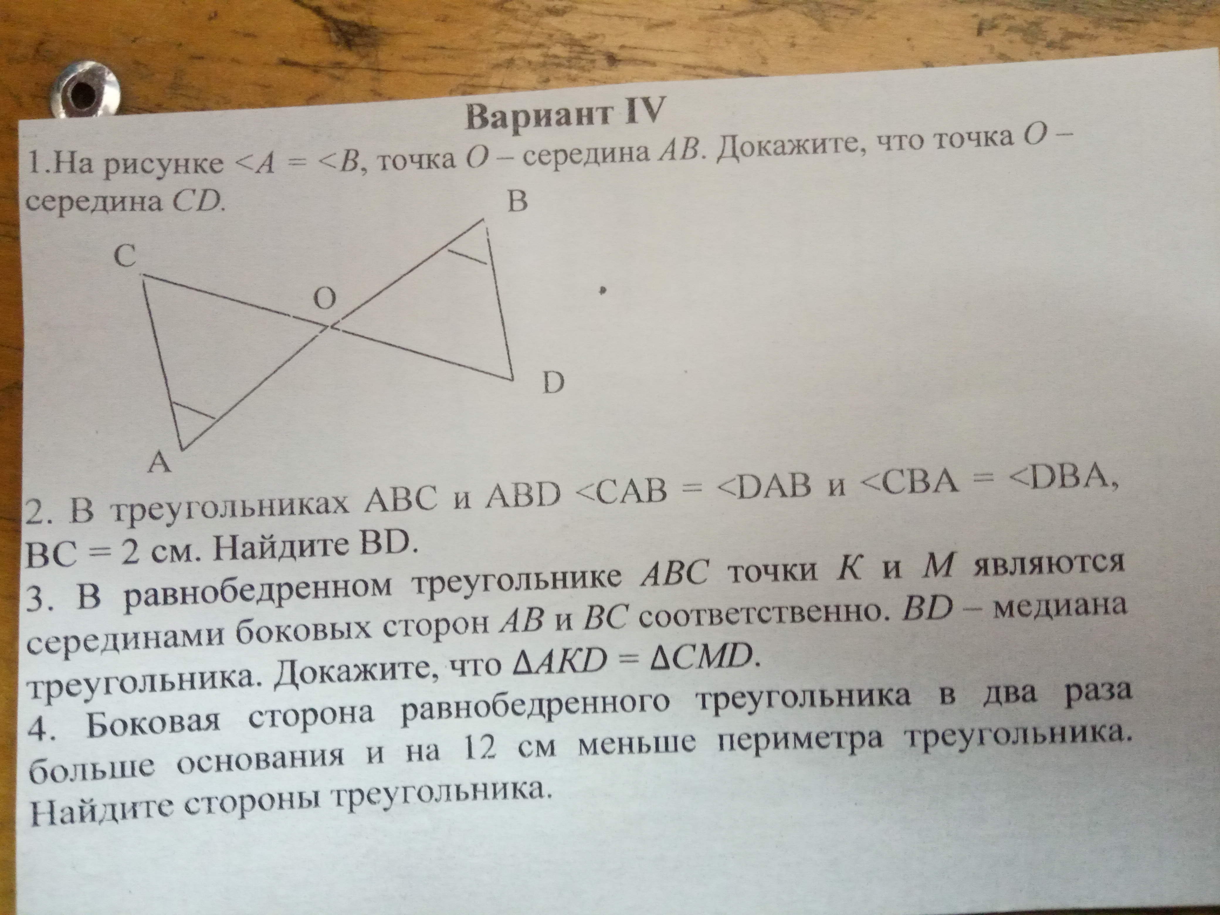 Угол А =углу Б как углы при секущей АВ и паралельными прямыми АС иБД По условию АО середина АВ следовательно СО середина СД так как прямые АС ИиБД параллельны.