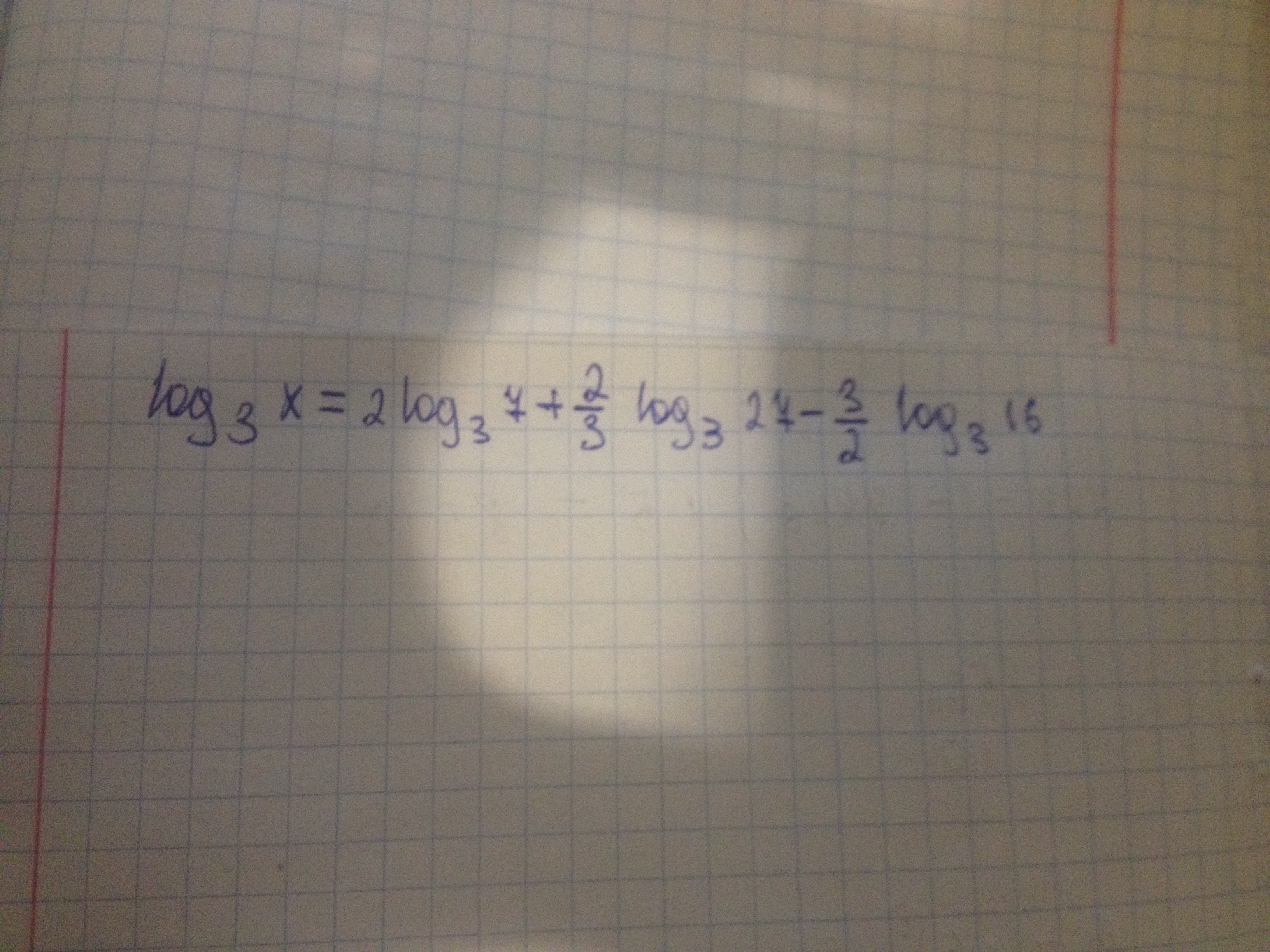 найдите x если log 3 x =2 log3 7+2/3 log 3 27-3/2 log 3 16