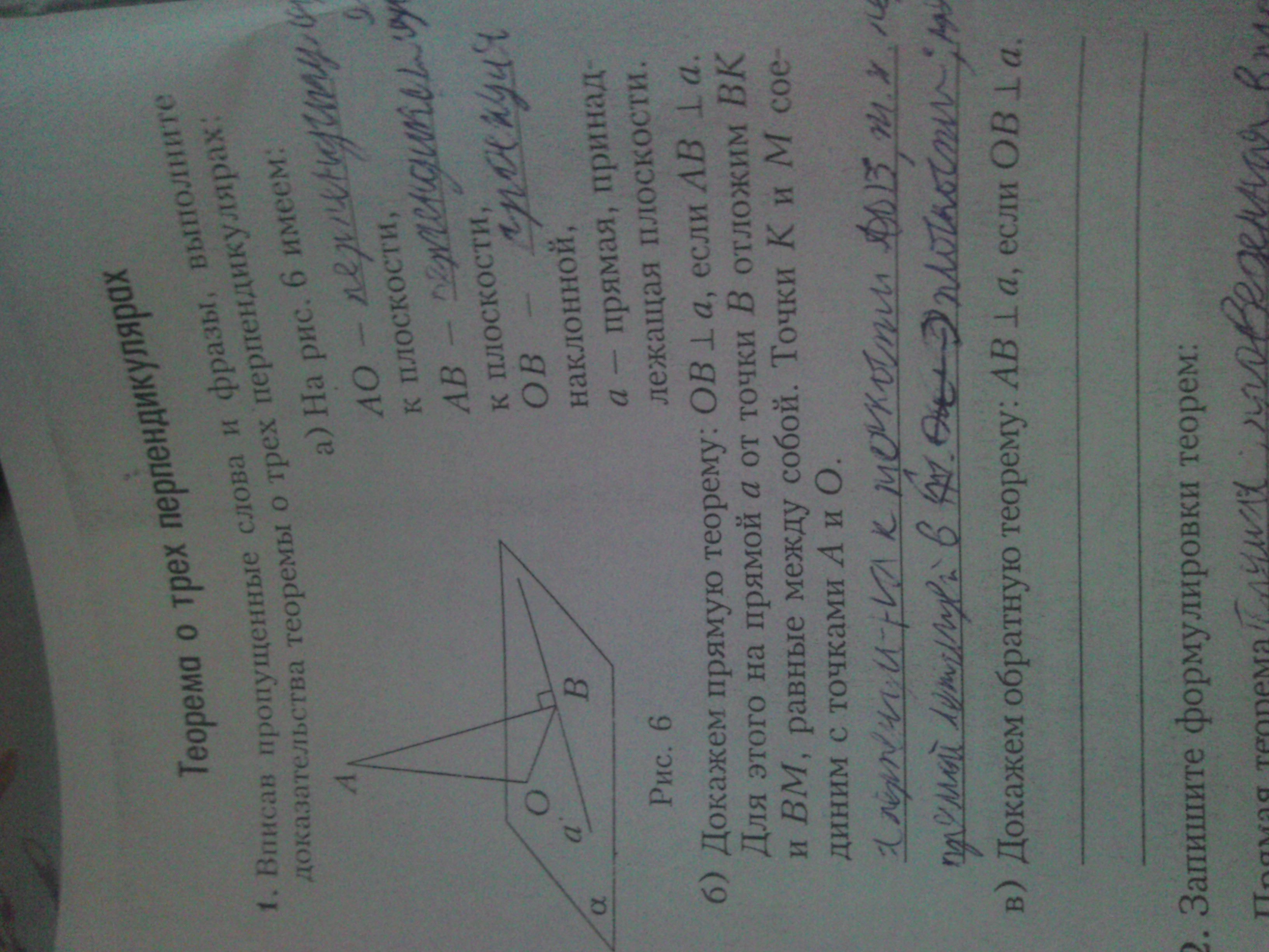 в ) Если прямая на плоскости перпендикулярна наклонной, то она перпендикулярна и проекции наклонной.