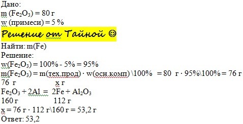 сколько граммов железа можно получить при восстановлении 80 г оксида железа 3, содержащего 5% примесей