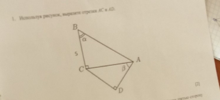 Геометри,8 класс. Используя рисунок,выразите отрезки АС и AD.( правильно оформить).Заранее спасибо)