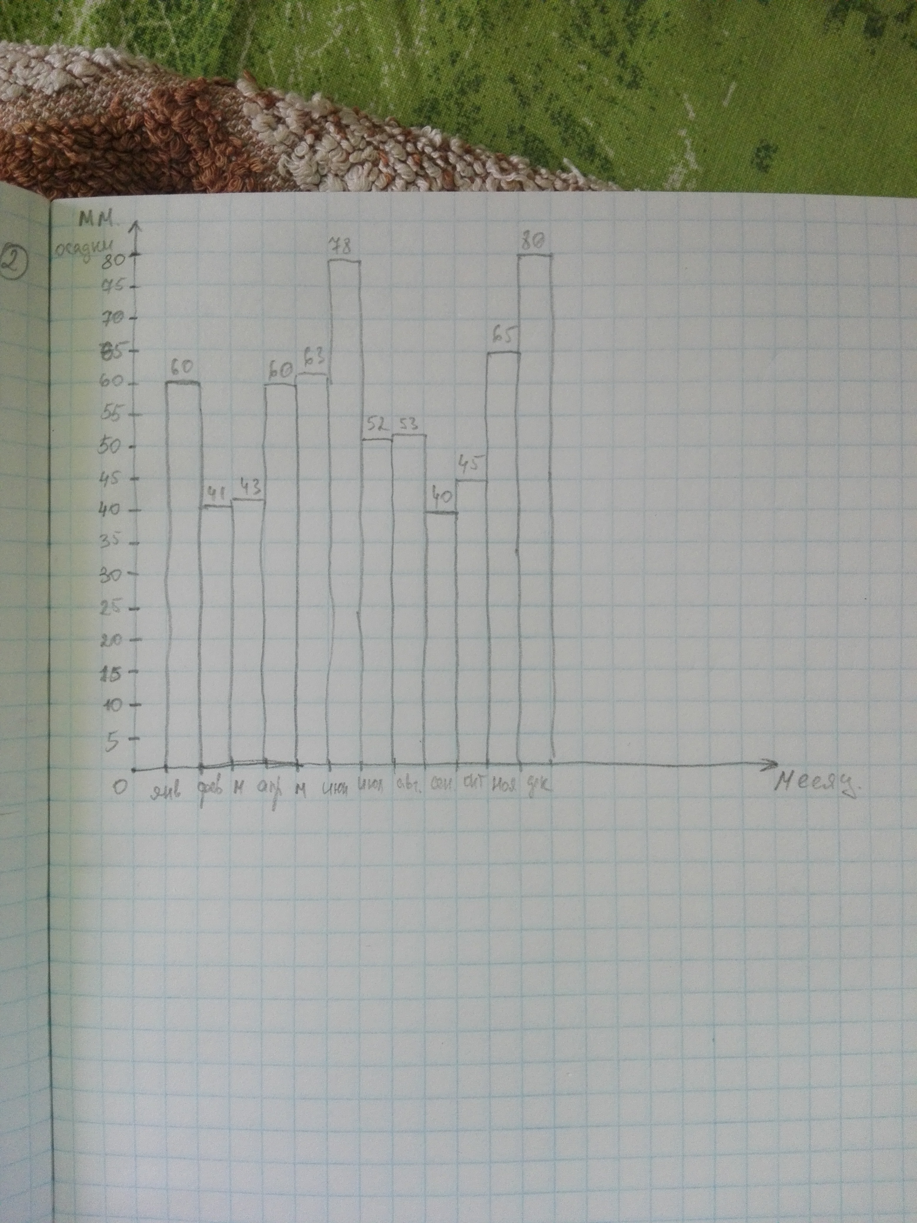Начерти график снизу месяца а слева осадки и от месяца вверх тяги линию до нужного