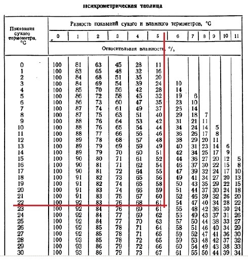 При температуре 22 c разность показаний термометров психометра 5 c Относительная влажность составляет...