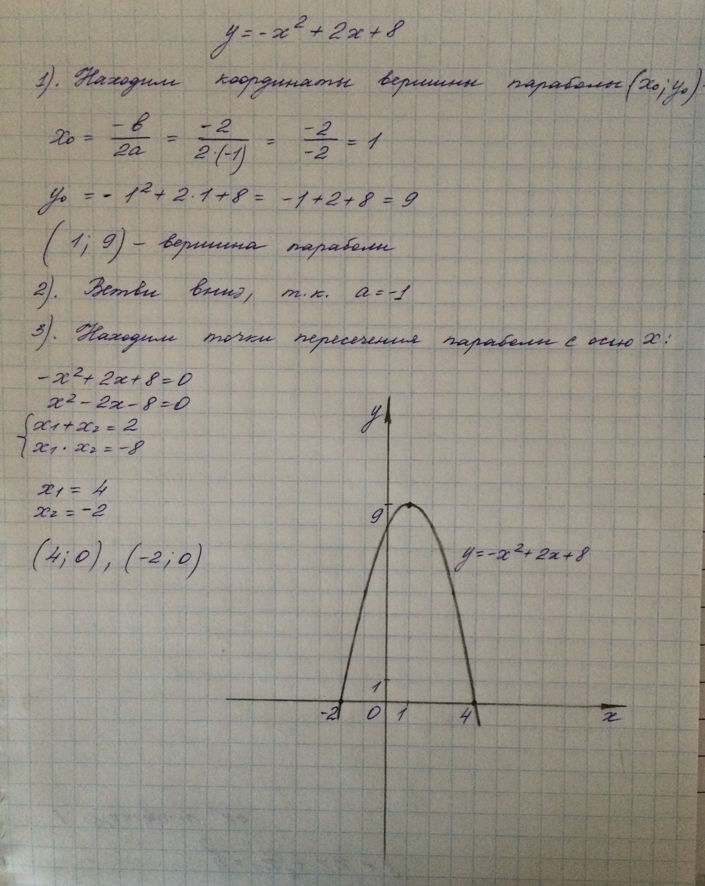Точки пересечения с осью ОХ: А(-2,0) , В(4,0) .
