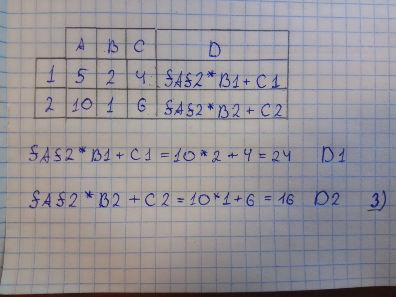 В ячейку D1 введена формула =$А$2*В1+С1,