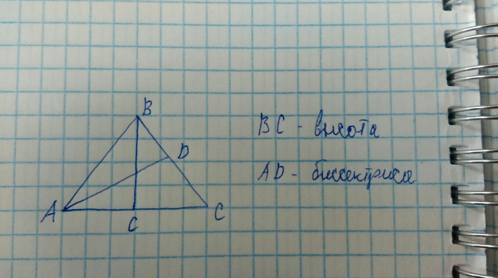 Дан равносторонний треугольник ABC.На его изображении постройте проекцию :а)высота треугольника ,проведённой из вершины B;б) биссектрисы угла A данного треугольника.