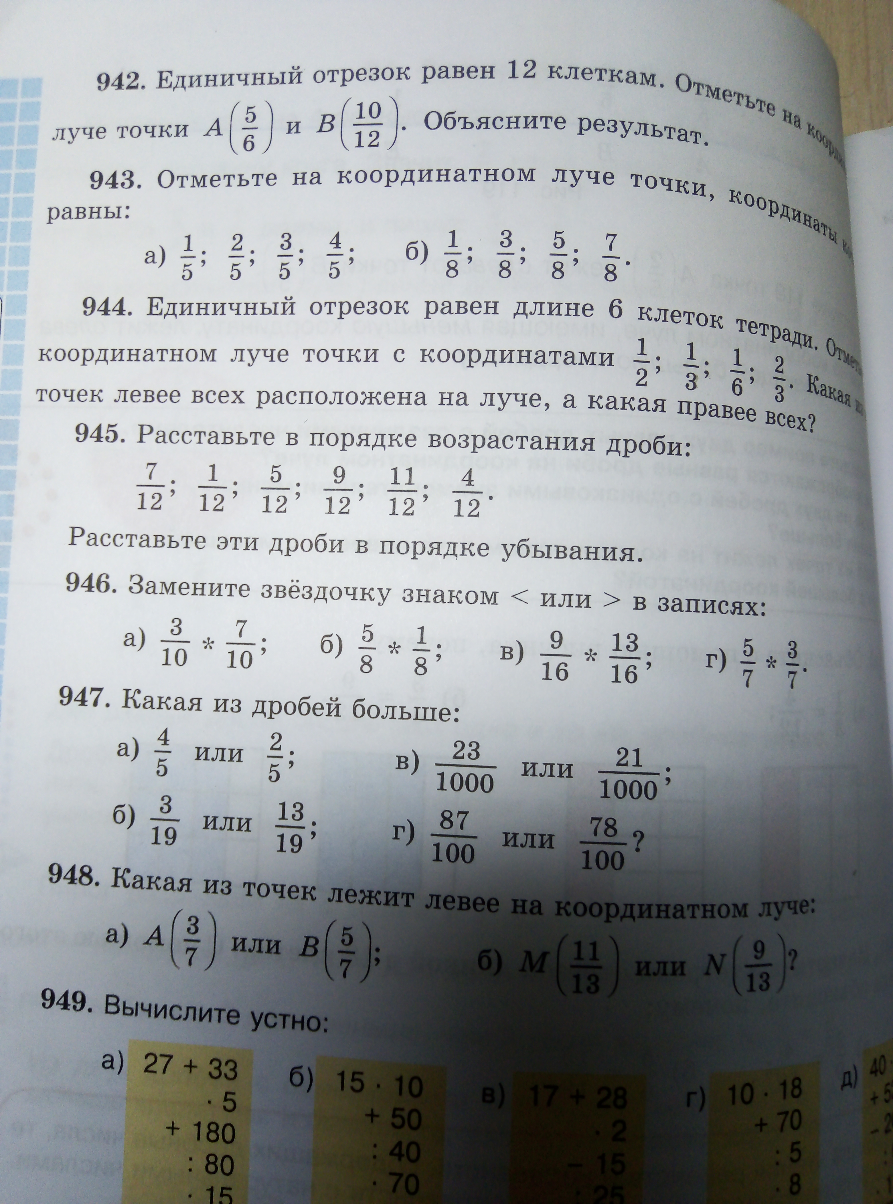 луч мы делим на части указанные в знаменателе и отщитываем то , что стоит в числителе