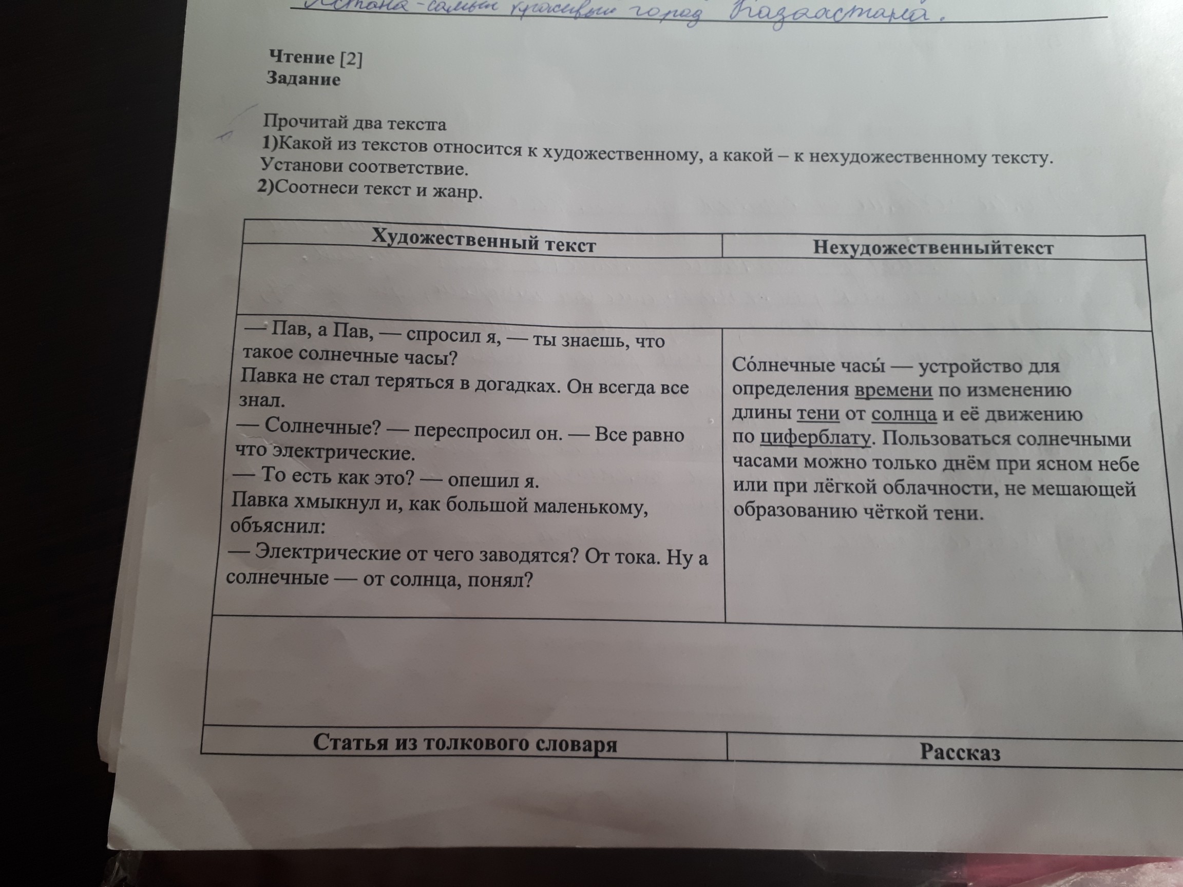 Прочитай 2 текста. Какой из текстов относится к художественному, а какой к нехудожественному тексту. Установи соответствие. Соотнесите текст и жанр.