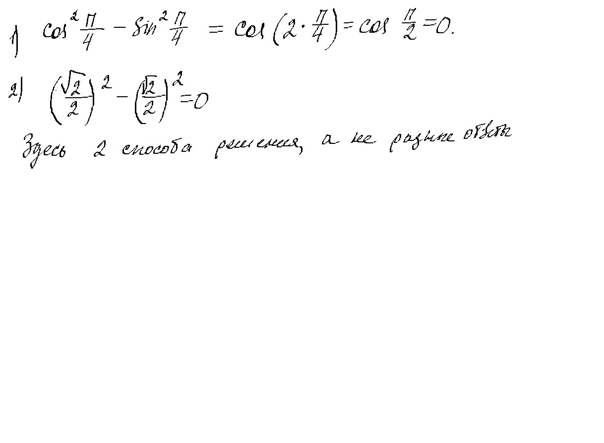 cos^2π/4 -sin^2π/4 должно быть несколько ответов