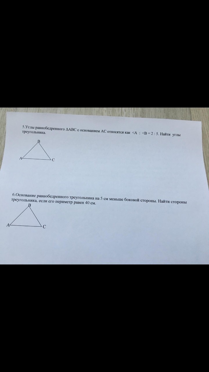 1) Пусть АС=х см, тогда АВ=ВС=(х+5) см (т.к. ∆АВС–равнобедренный)