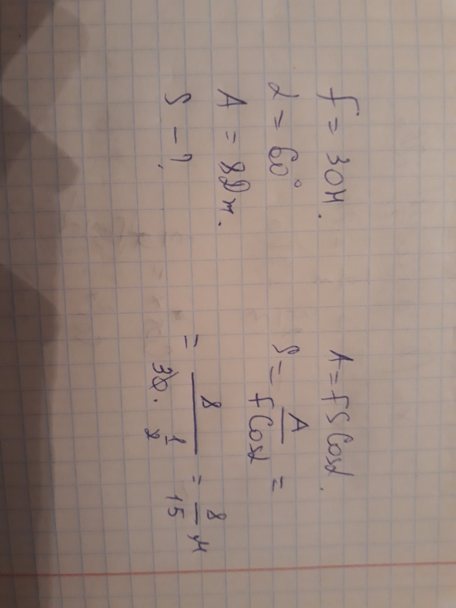на какое расстояние переместиться тело под действием силы 30Н , если угол между приложенной силой и перемещением равен 60. Работа силы 8 Дж?