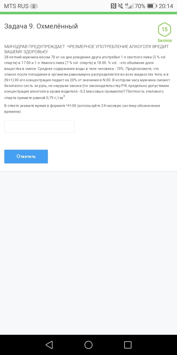 масса алкоголя к 18 часам : А₁₈ = V₄ * ρ = 110 * 0,79 = 86,9 (г)
