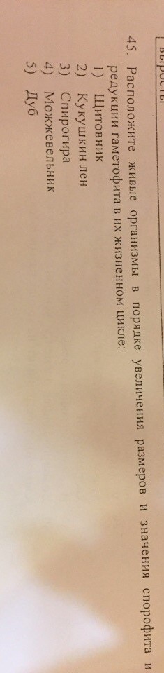 3,2,1,4,5. 3 - водоросли, 2 - мхи, 1 - папоротники, 4 - голосеменные, 5 - покрытосеменные.