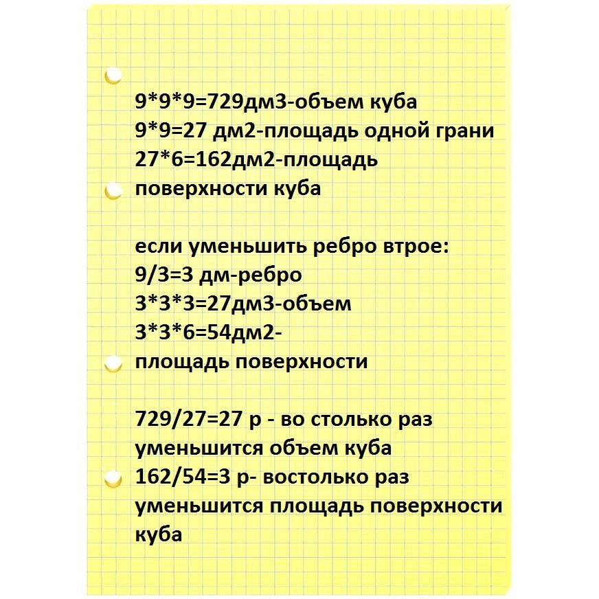 найдите площадь поверхности и объем куба ,ребро которого равно 9дм .во сколько раз уменьшится площадь поверхности и во сколько раз -объем куба ,если его ребро уменьшить втрое?