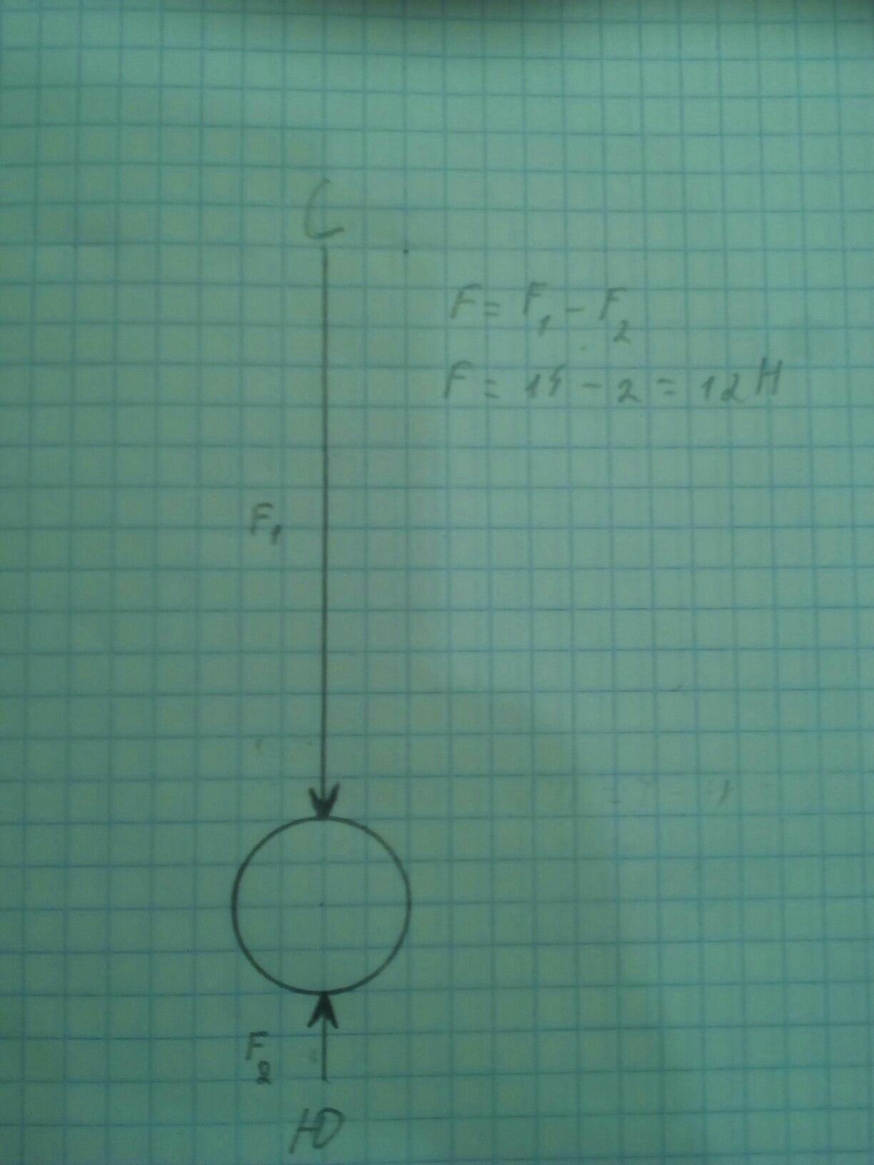 a) равнодействующая сила равна 14-2 =12Н та как они направлены противоположно друг другу мы должны их вычесть