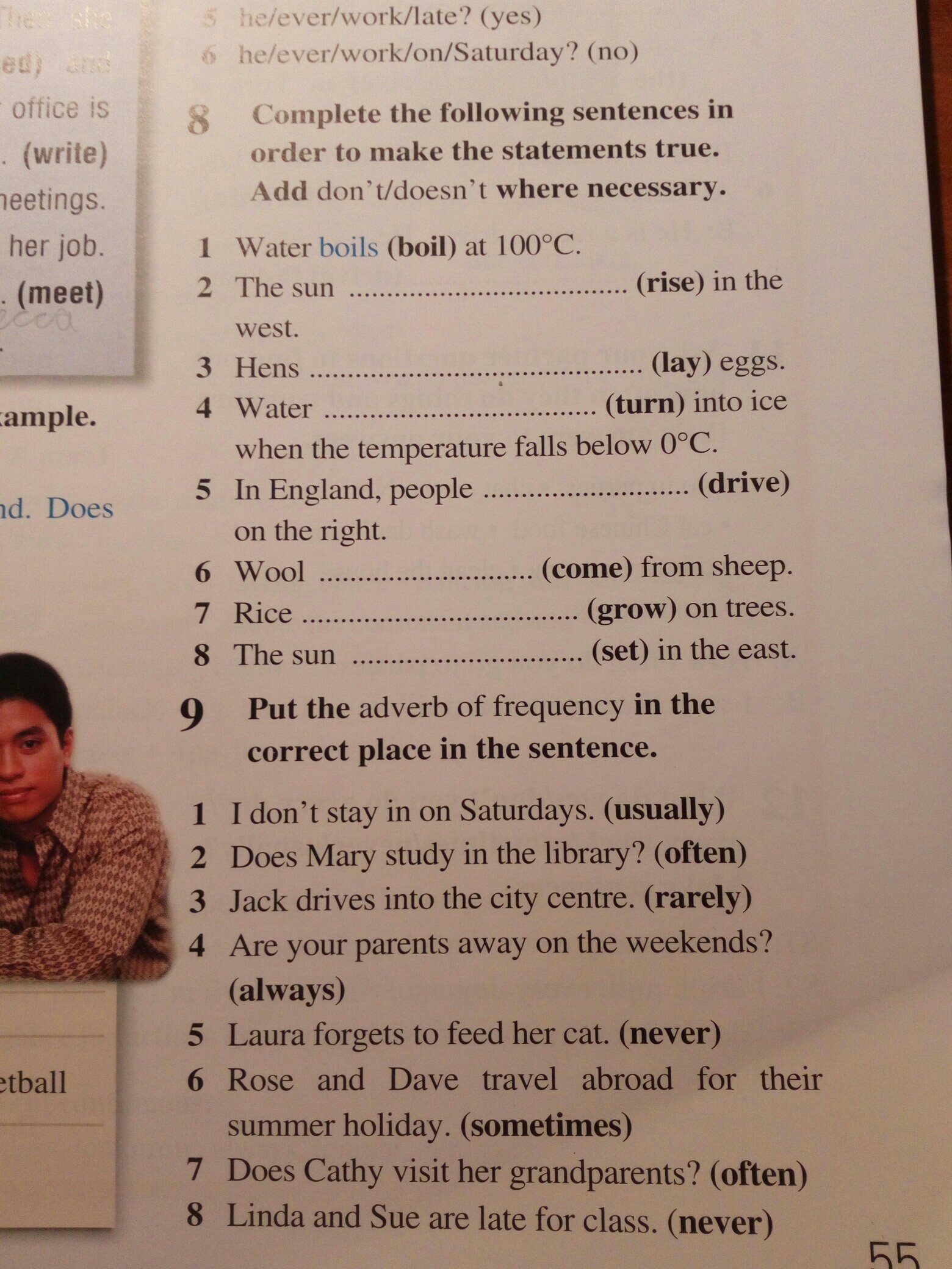 2. doesn't rise 3. lay 4. turns 5. don't drive 6. comes 7. doesn't grow 8. doesn't set