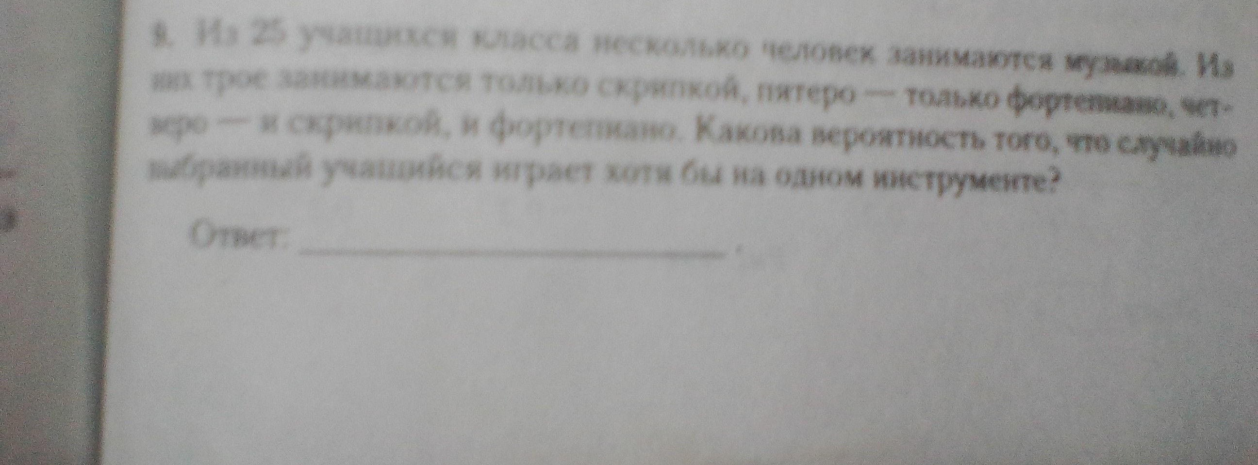 Значит найдём вероятность тех, кто играет только на скрипке, только на фортепиано и на двух инструментах сразу и суммируем.