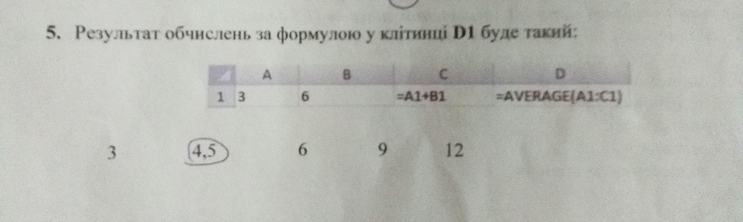 Здесь C = A1 + B1, то есть 3 + 6 = 9, а D = (A1 + C1) / 2 = (9 + 3) / 2 = 12 / 2 = 6