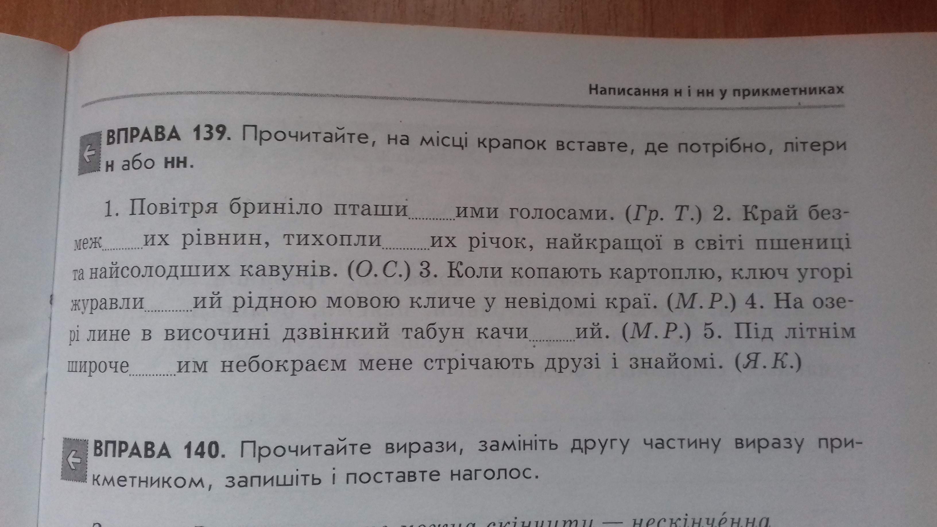 1-пташиними.2 безмежнних, тихоплинних.3 журавлиний.4 качиний.5 широченний.