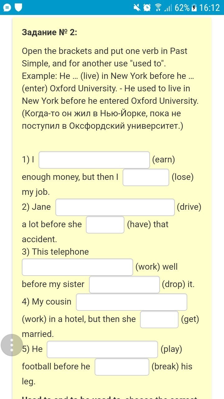 Open the brackets and put one verb in Past Simpe , and another use"used to". Пожалуйста помогите.