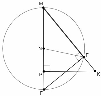 EN=MN, E на окружности, ∠MEF - прямой (опирается на диаметр).