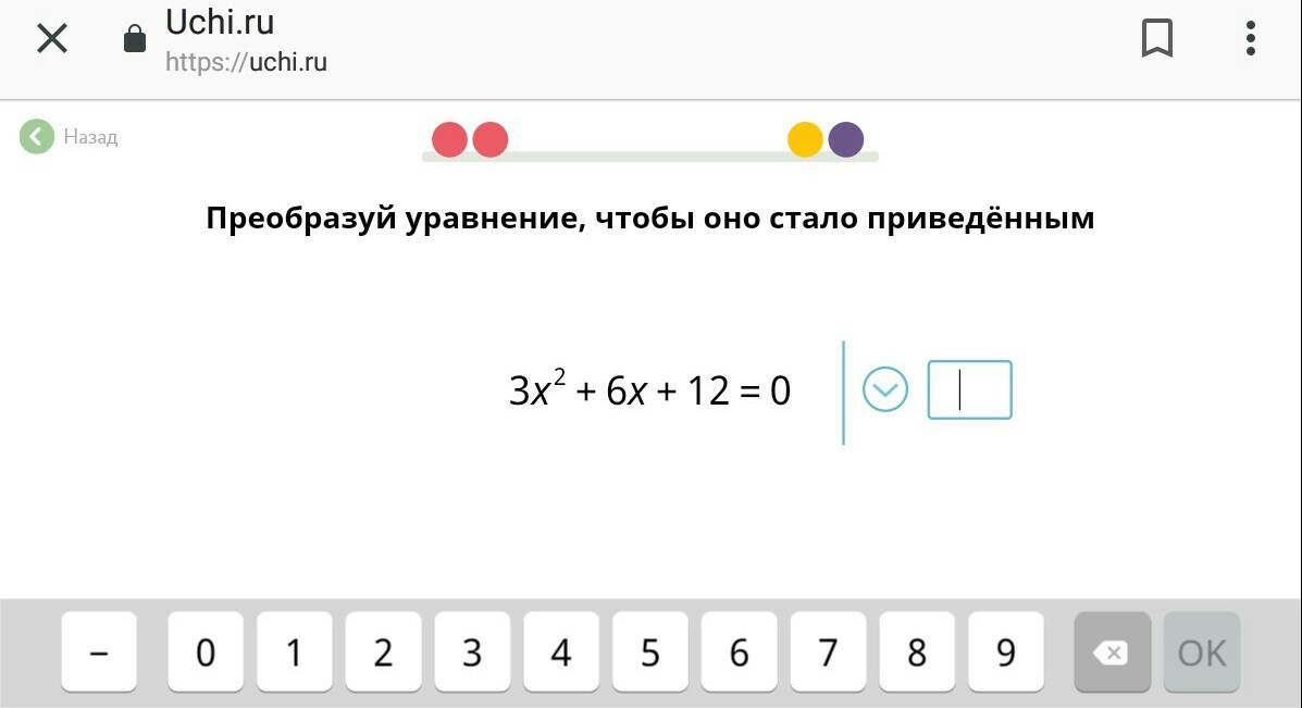 Приведенное квадратное уравнение —уравнение вида , первый коэффициент которого равен единице ( ). поэтому надо уравнение поделить на три,