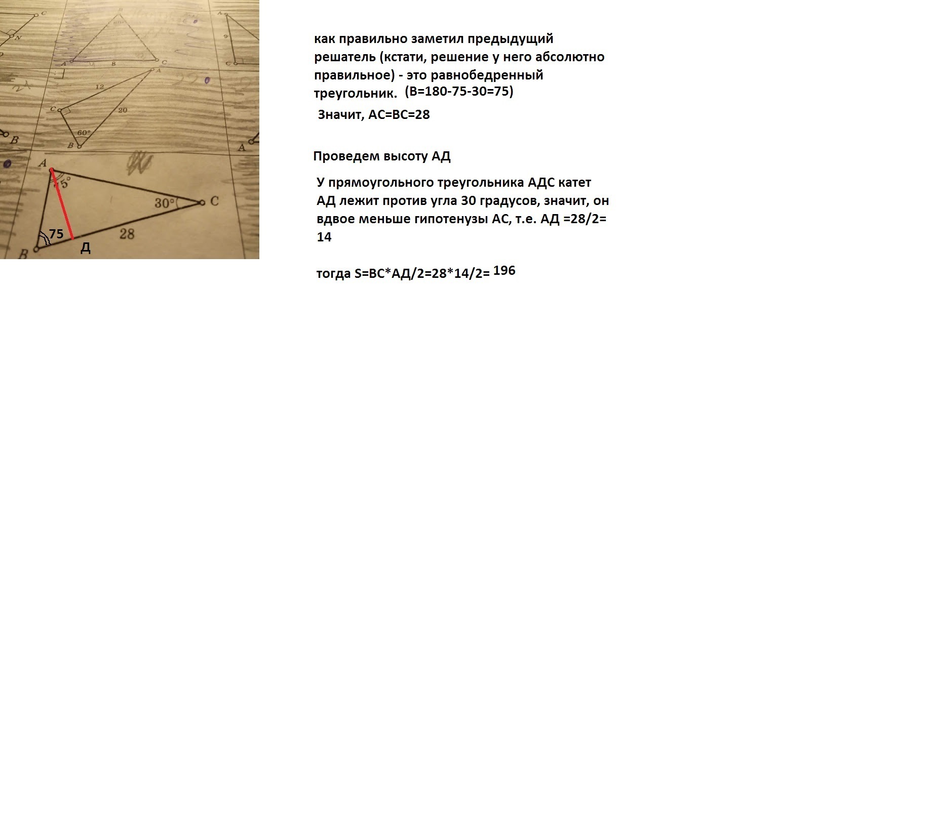 Отсюда получим что ∠B = ∠A = 75°; ( 180 - ( 75+30 ) );