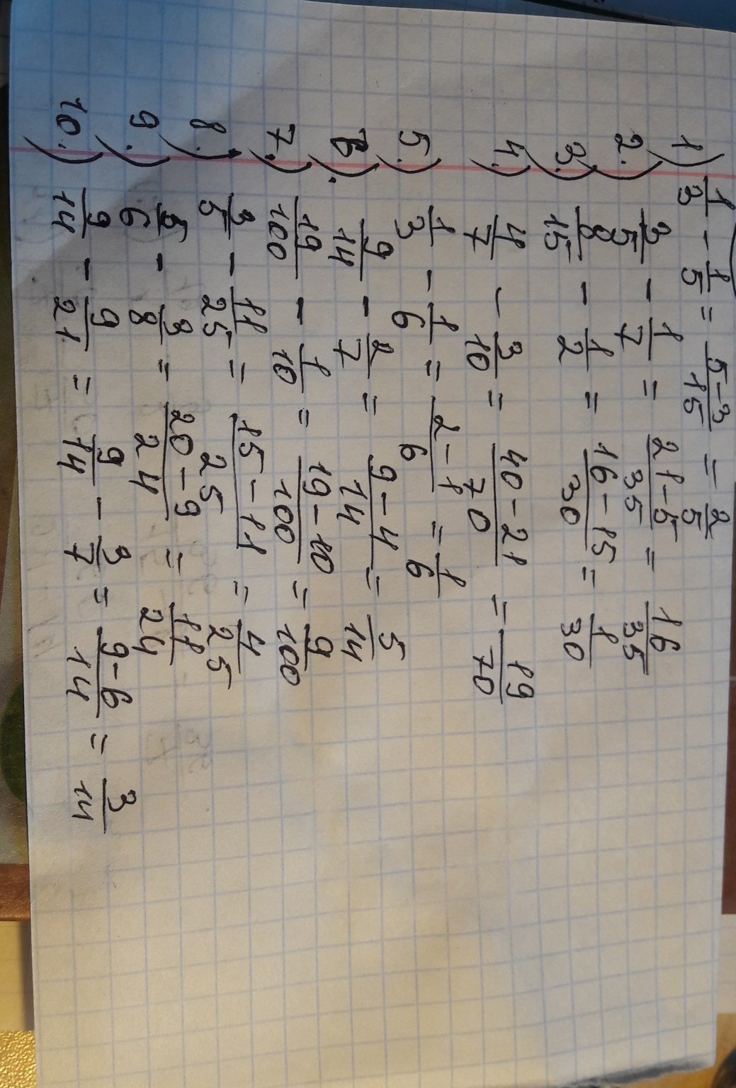 1/3-1/5;3/5-1/7;8/15-1/2;4/7-3/10;1/3-1/6;9/14-2/7;19/100-1/10;3/5-11/25;5/6-3/8;9/14-9/21;7/20-7/30;5/12-2/9