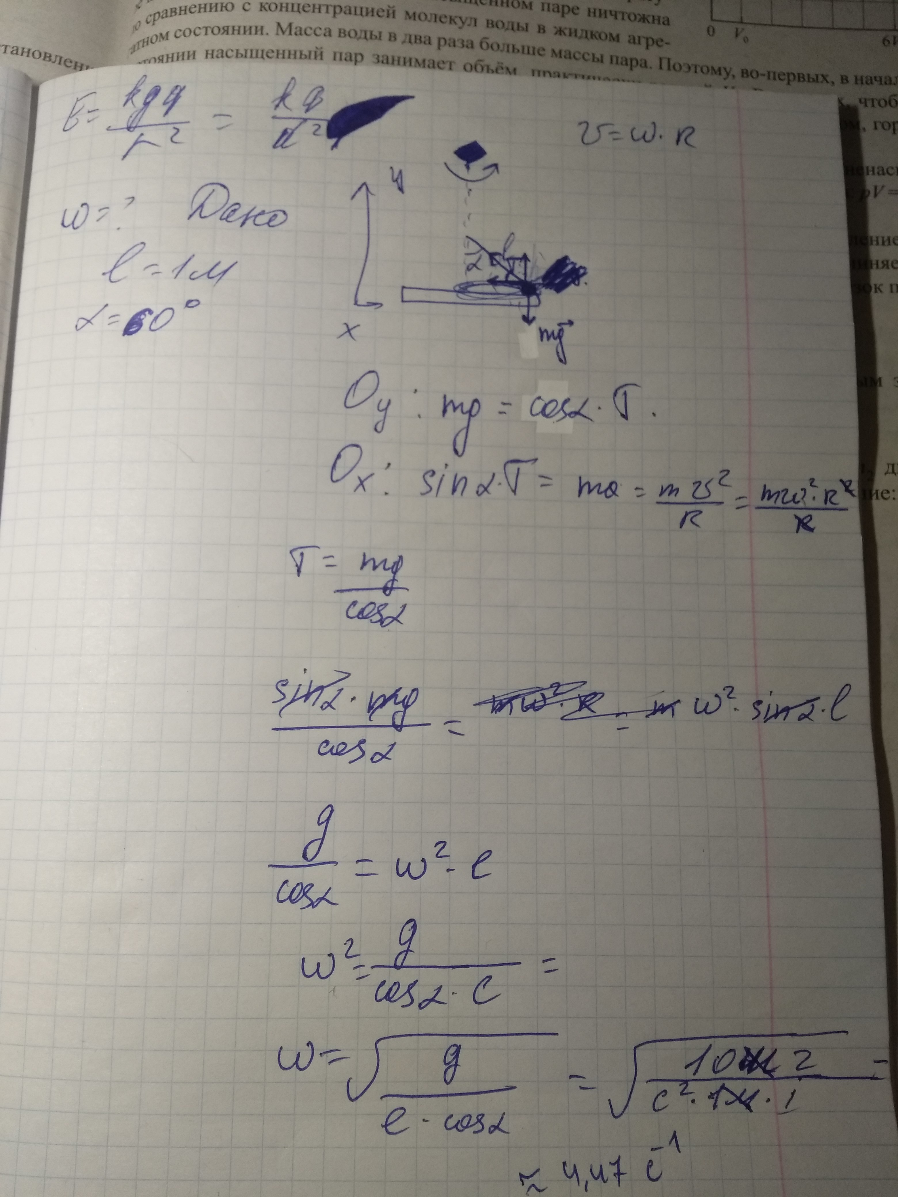 w=√gL*сosa=√10 ,5=4,47 радс