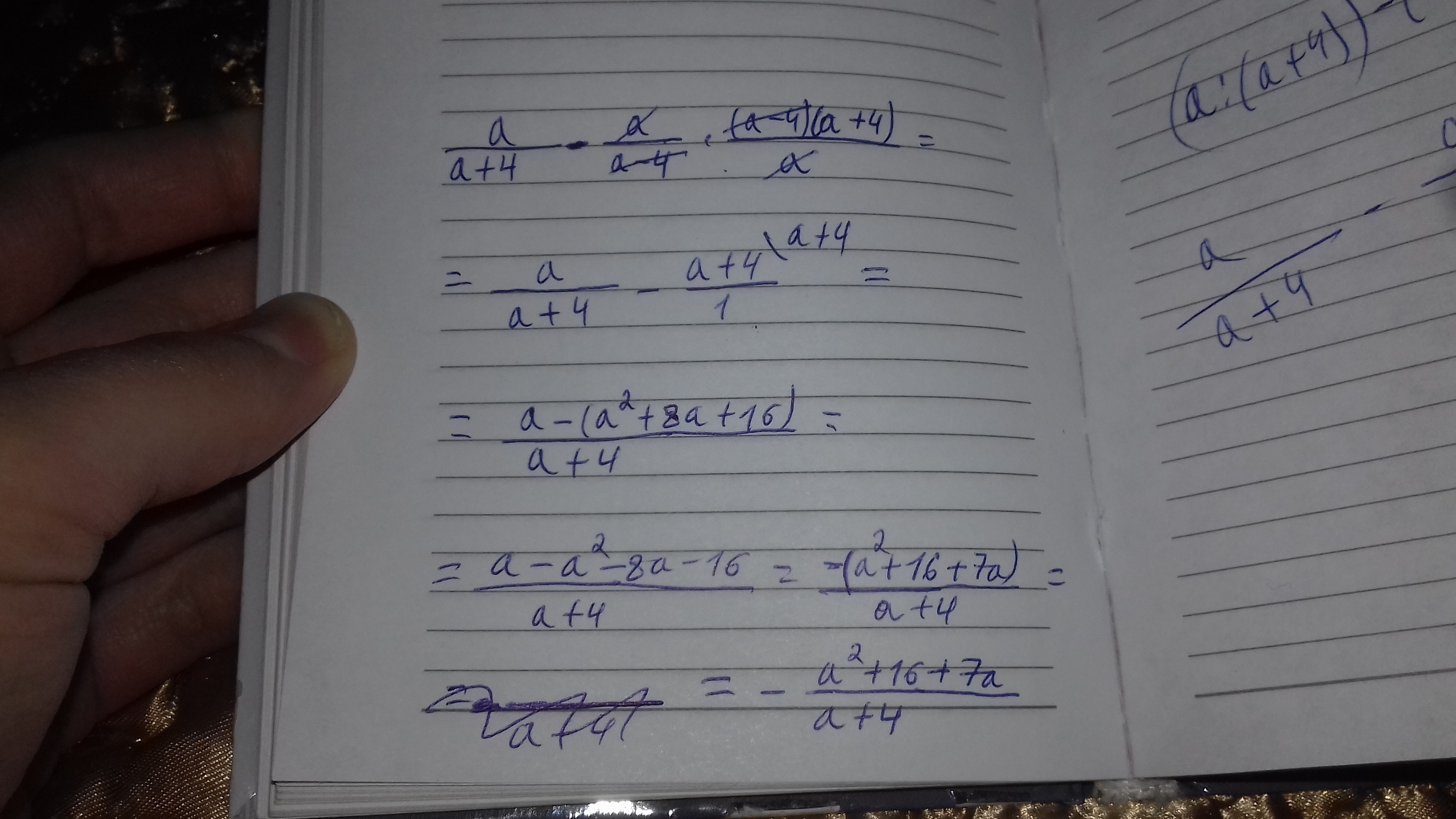(a/(a+4))-(a/(a-4))*((a-4)*(a+4))/a=
