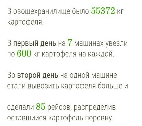 2) Во второй день на каждой машине вывозили по кг картофеля.