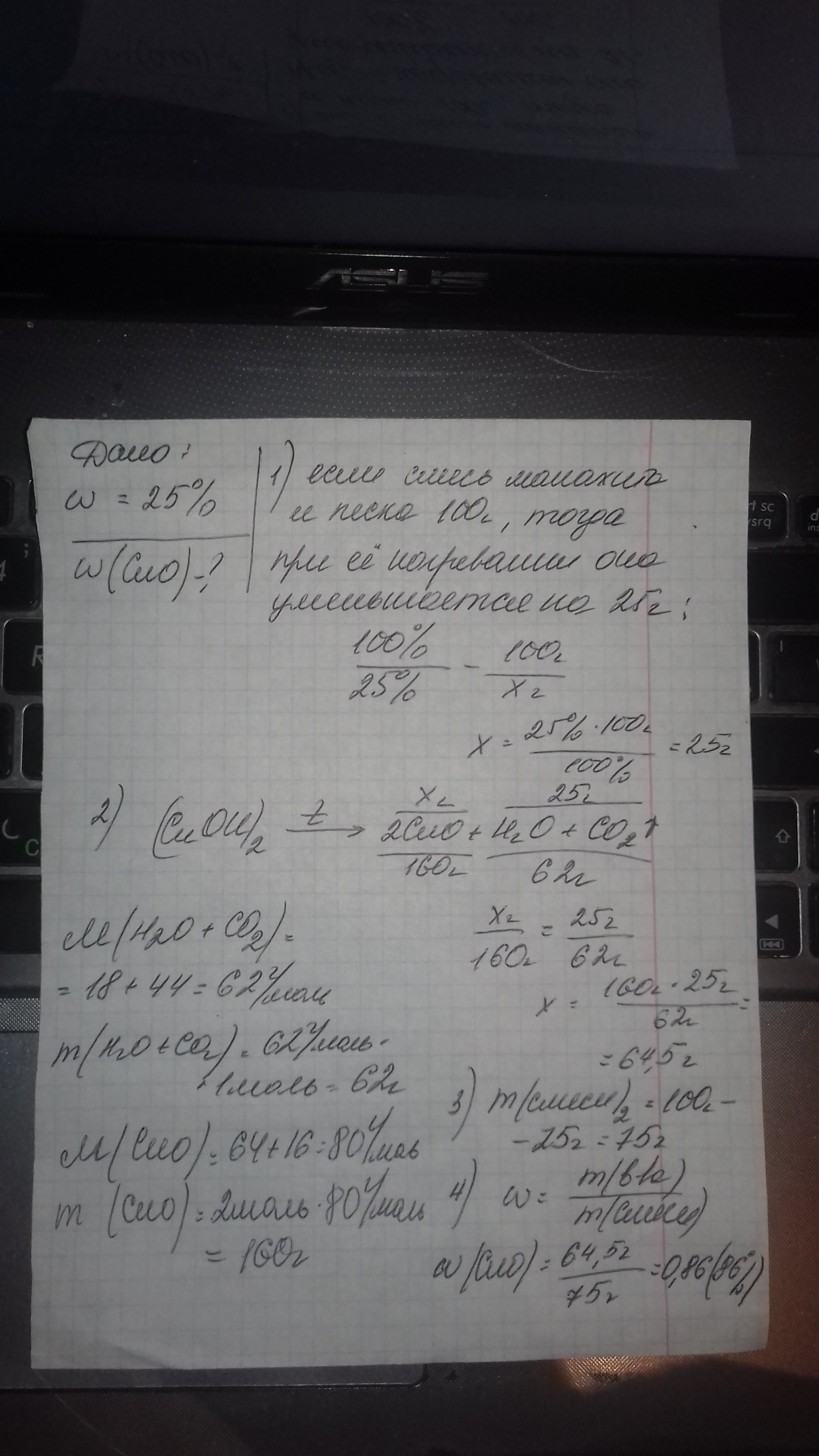 углекислый газ. Образец малахита, содержащий примесь песка, при нагревании потерял 25 %