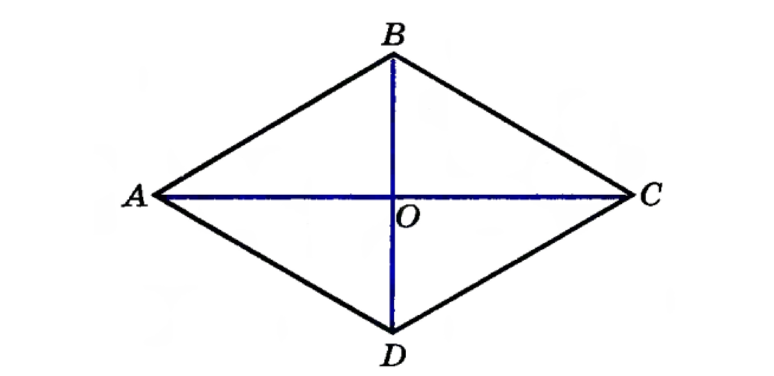 Рассмотрим любой из четырех равных прямоугольных треугольников внутри ромба например: треугольник AOB.