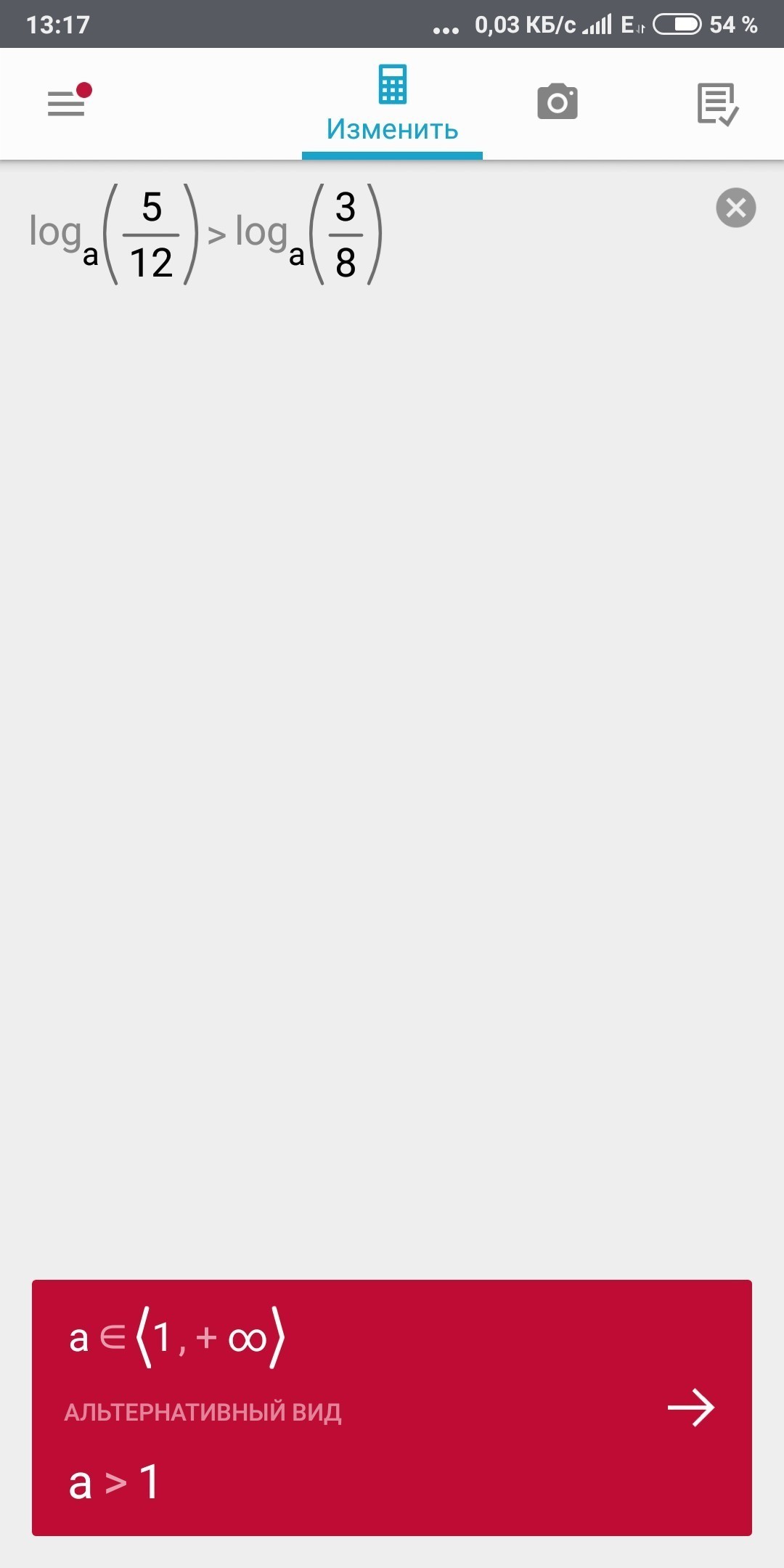 Т.к. подлогарифмическое выражение первого логарифма больше, чем второго, то для того, чтобы сам логарифм был больше второго, необходимо, чтобы основание логарифма a > 1