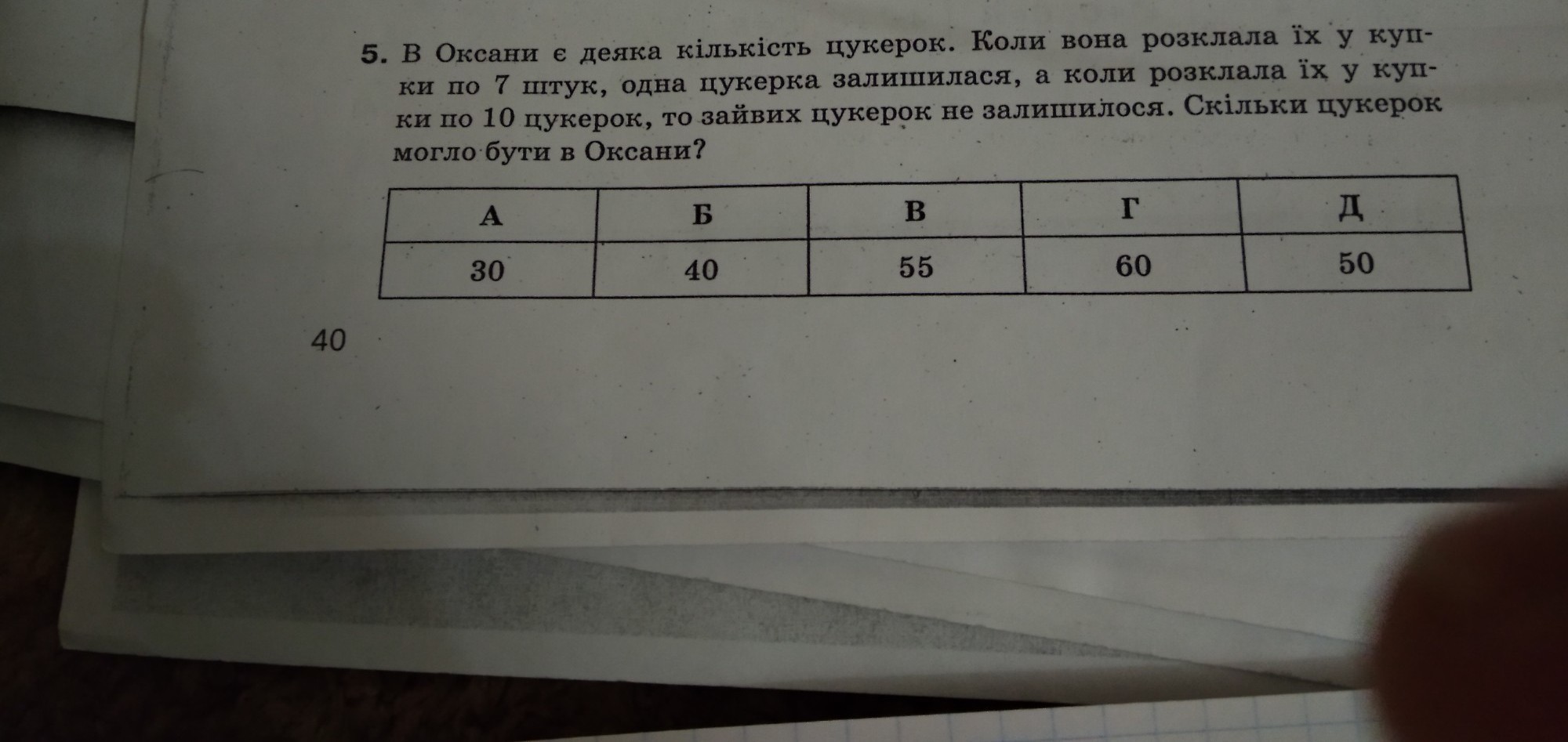 40 ÷ 7 = 5 (ост. 5) - не підходить.