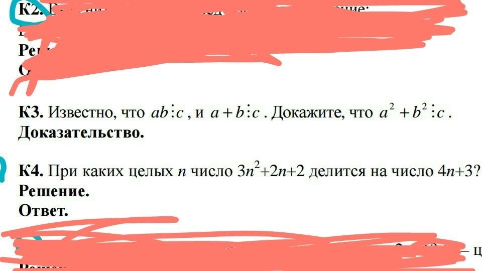 a²+b² = (a+b)²-2ab = c²t²- 2cq = c(ct²-2q). Выражение в скобках - целое число)⇒а²+b² - кратно числу с. С заданием №4 идеи не привели пока к результату. Получится - добавлю в решение.