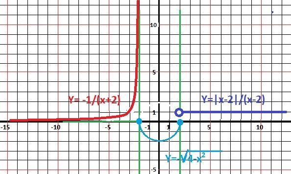 Первый участок. Y = - 1/(x+2) и х+2 ≠0 и х≠ -2 - дано.