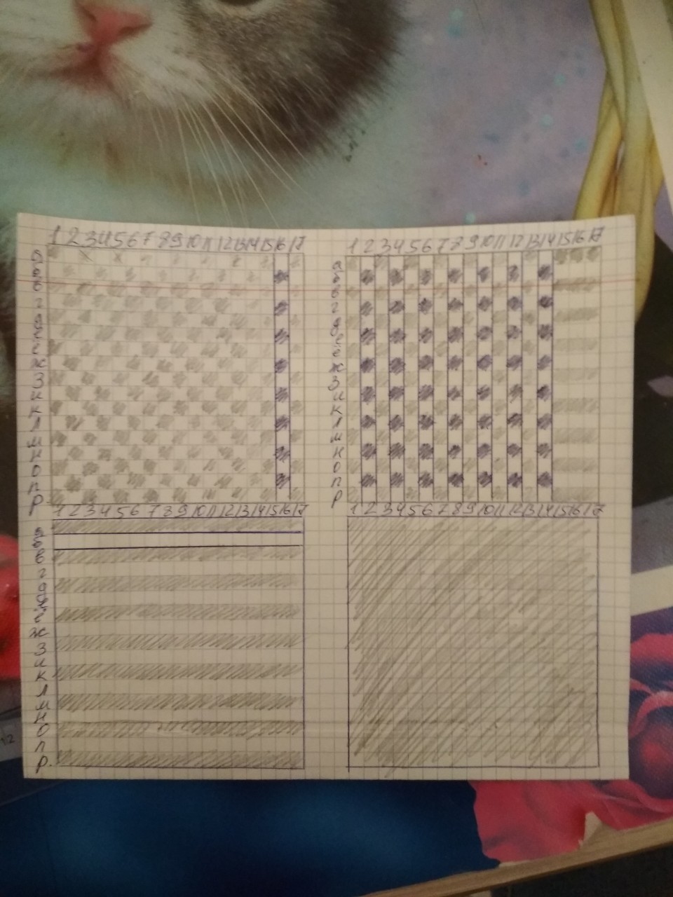2) в столбцах 16,14,12,10,8,6,4,2 так же поменяем цвета клеток на противоположные