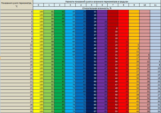 Относительная влажность воздуха φ называют отношение абсолютной влажности воздуха ρ к плотности ρ₀ насыщенного водяного пара при той же t°С, выраженной в процентах.