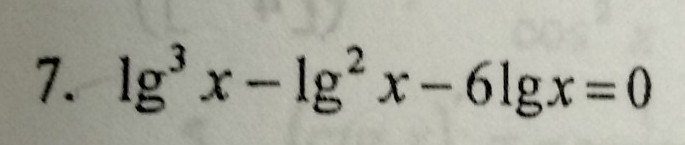 Пусть lg(x)=t, тогда мы получаем кубическое уравнение t³-t²-6*t=0, или t*(t²-t-6)=0. Отсюда либо t1=0, либо t²-t-6=0. Второе уравнение имеет решения t2=3 и t3=-2. Тогда x1=10^t1=10^0=1, x2=10^t2=10³=1000, x2=10^t3=10⁻²=0,01. Ответ: x1=1, x2=1000, x3=0,01.