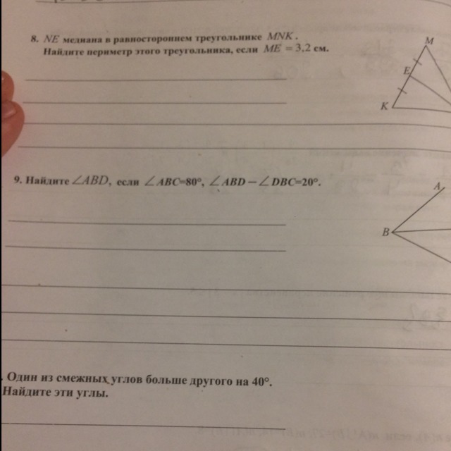 Во второй задаче раз угол АВС 80° и он состоит из АВD и DBC, то составляем уравнение