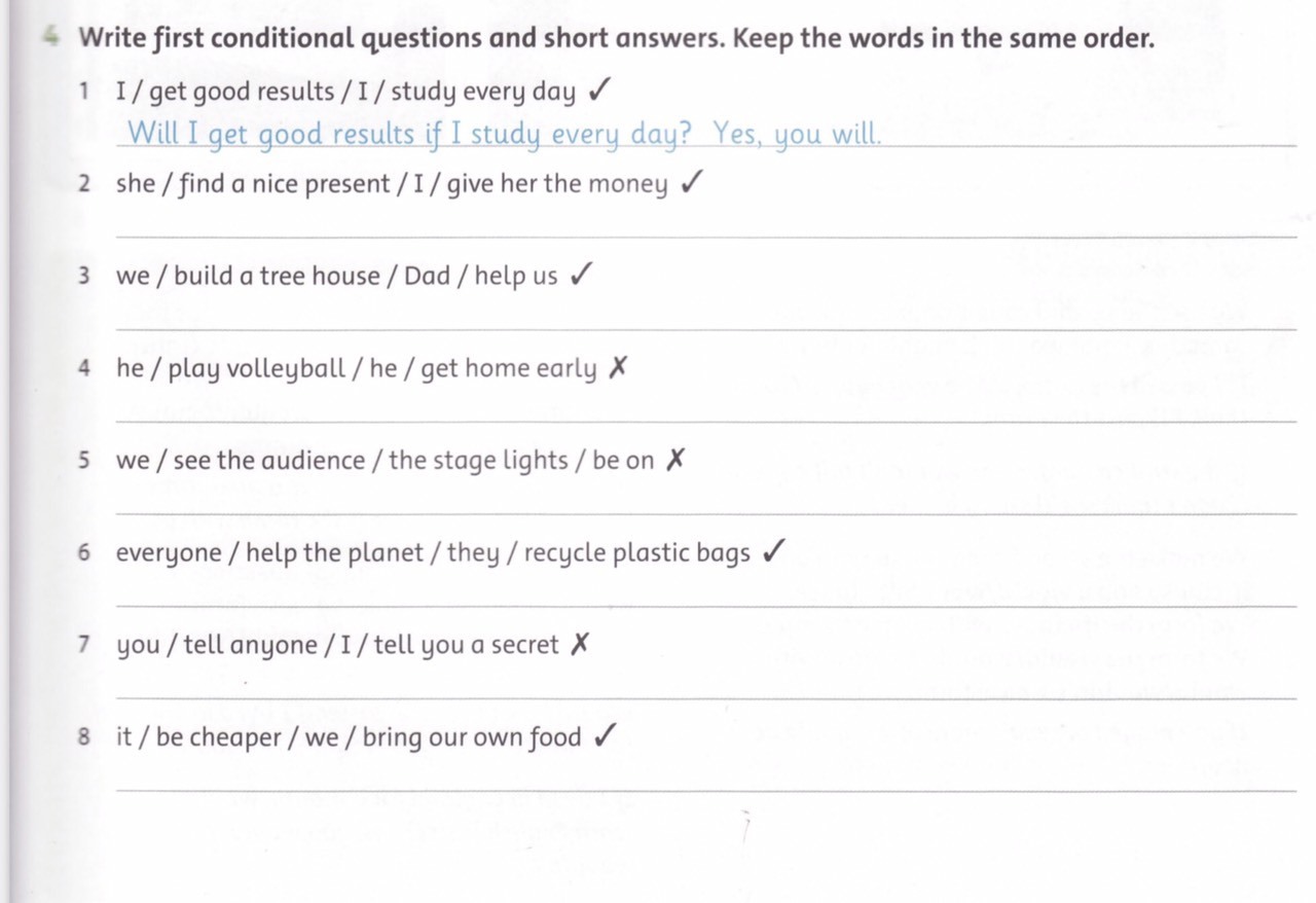4. Will he play volleyball if he gets home early? - No, he won`t.