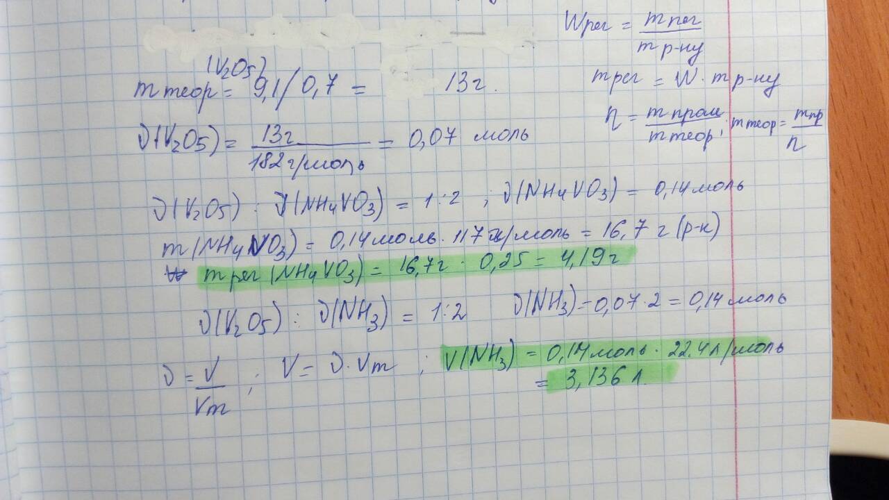 Відповідь: об"єм аміаку- 3.136л, маса амоній метаванадату - 4.19 г.