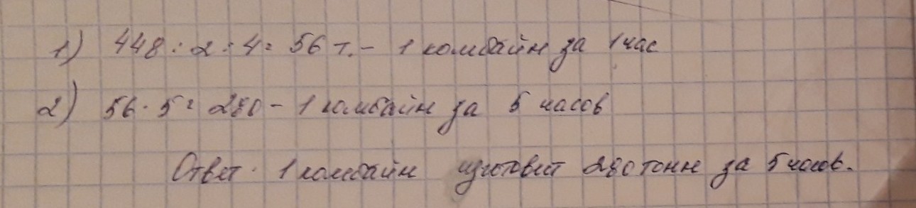1.) 448÷4=112 (т) - один комбайн