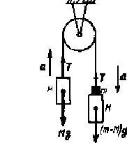 Поэтому была придумана машина Атвуда. Схема ее на рисунке.